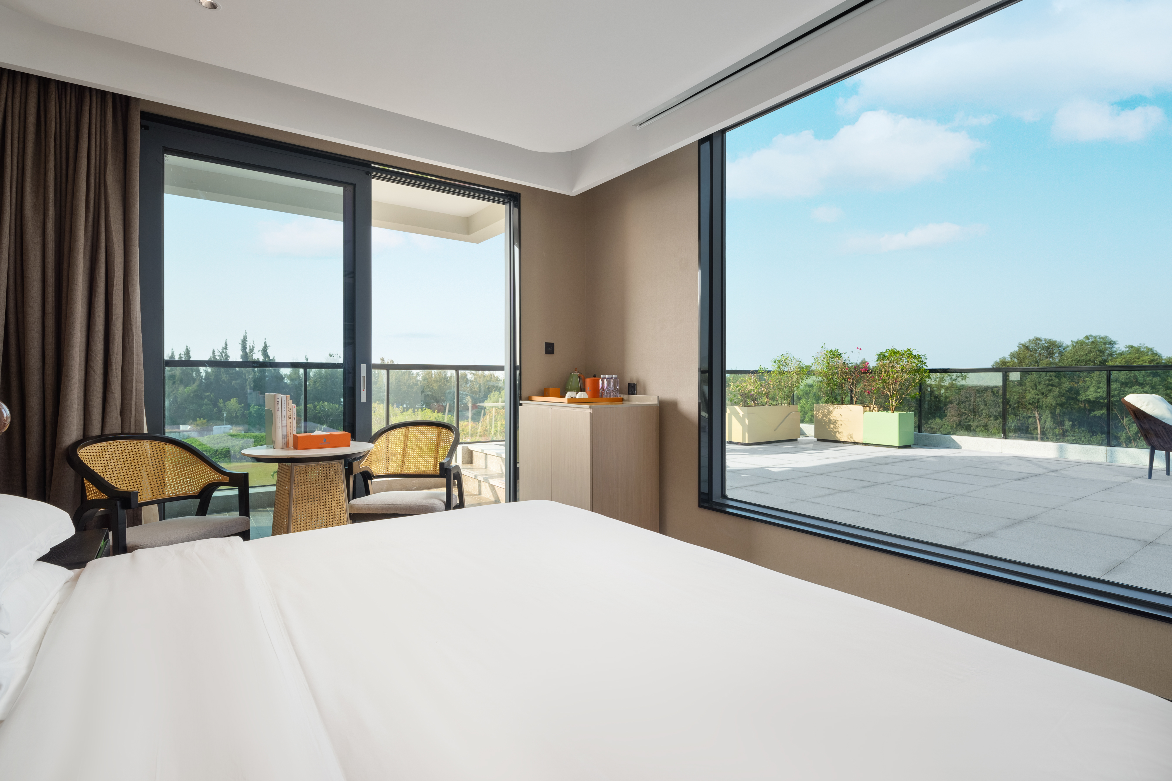 | 卫浴设施 | 独立卫浴/智能马桶/吹风机/浴袍 | 家具设施 | 双椅/手持式电熨斗/客房保险柜/晾衣架 | 餐饮设施 | MINI酒水吧/餐具/咖啡茶饮 |
