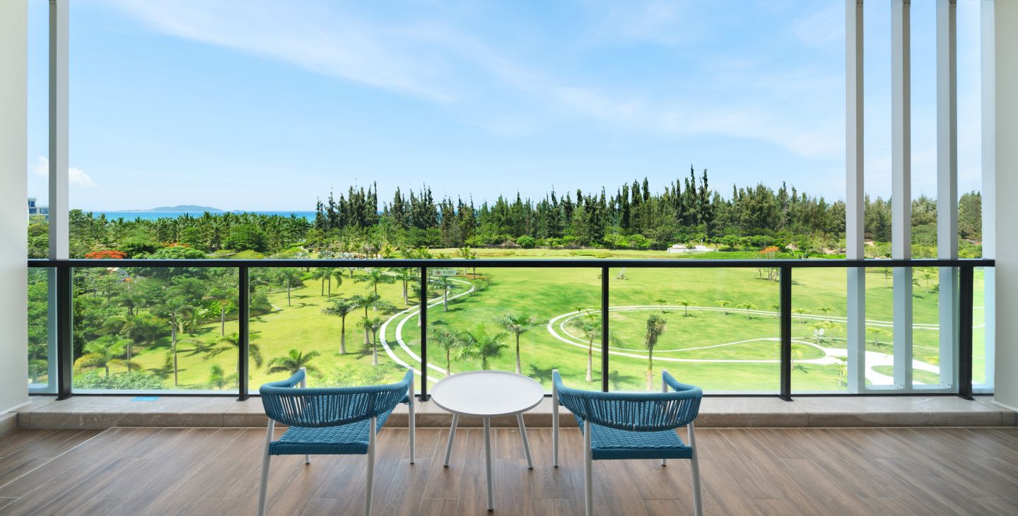 | 卫浴设施 | 独立浴间 / 智能马桶 / 吹风机 / 浴袍 | 家具设施 | 双人沙发 / 双椅 / 阳台休闲座椅 / 手持式电熨斗 / 客房保险箱 / 晾衣架 | 餐饮设施 | MINI酒水吧 / 餐具 / 咖啡茶饮 |