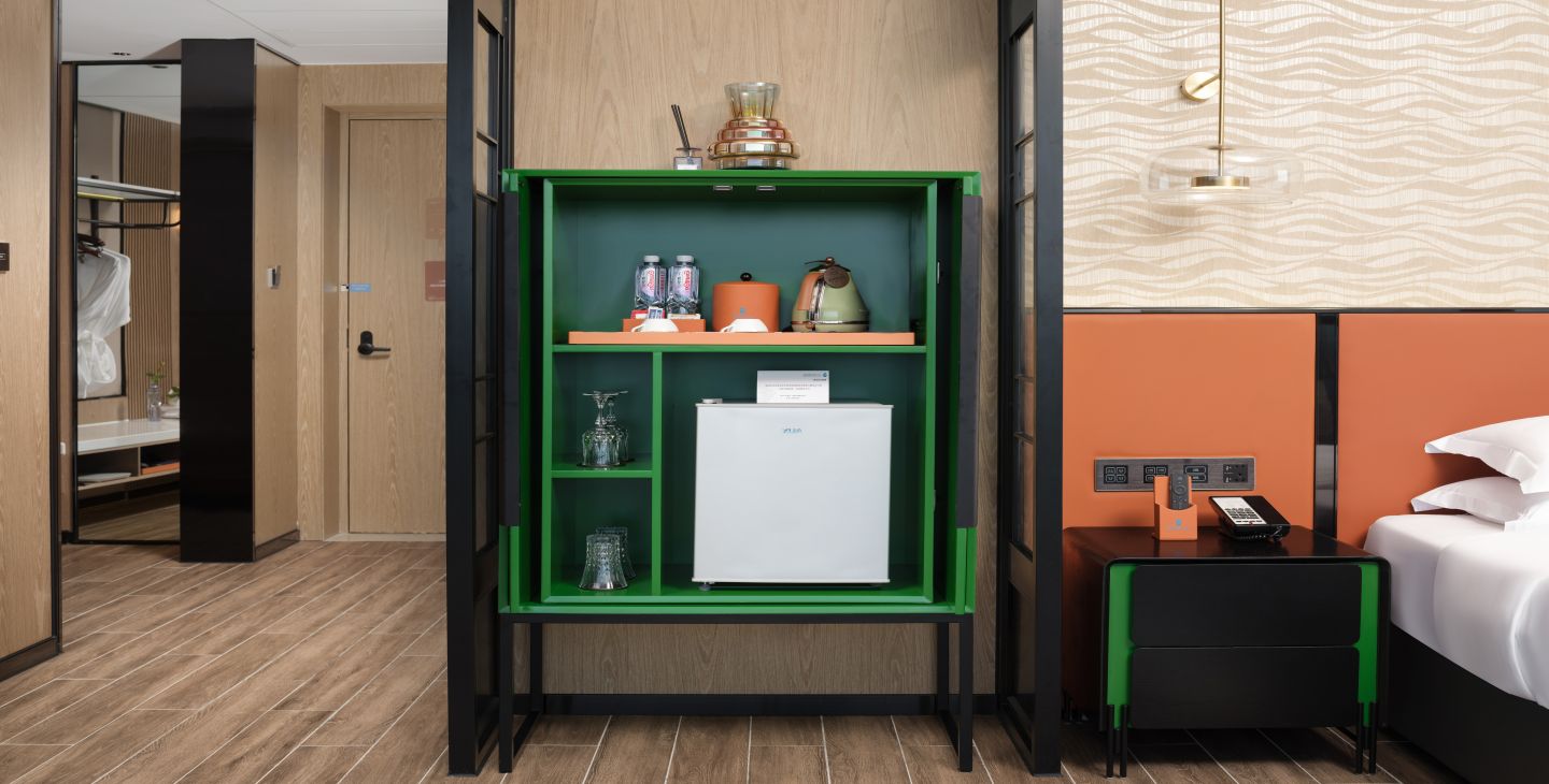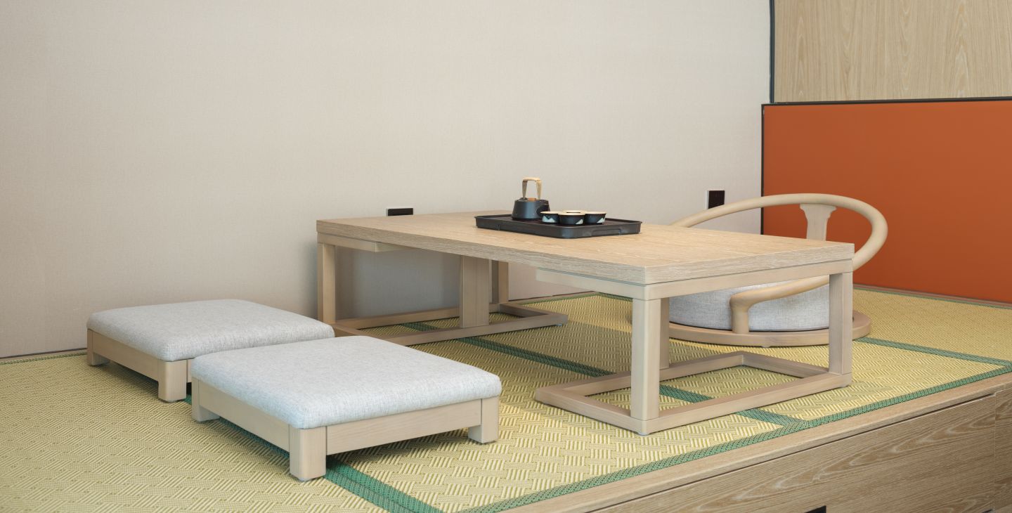 | 卫浴设施 | 双梳洗手台 / 独立浴间 / 双人浴缸 / 智能马桶 / 吹风机 / 浴袍 | 家具设施 | 榻榻米席坐 / 双人沙发 / 双椅 / 阳台圆床 / 观景高脚桌椅 / 手持式电熨斗 / 客房保险箱 / 晾衣架 | 餐饮设施 | MINI酒水吧 / 餐具 / 咖啡茶饮 / 功夫茶具 |