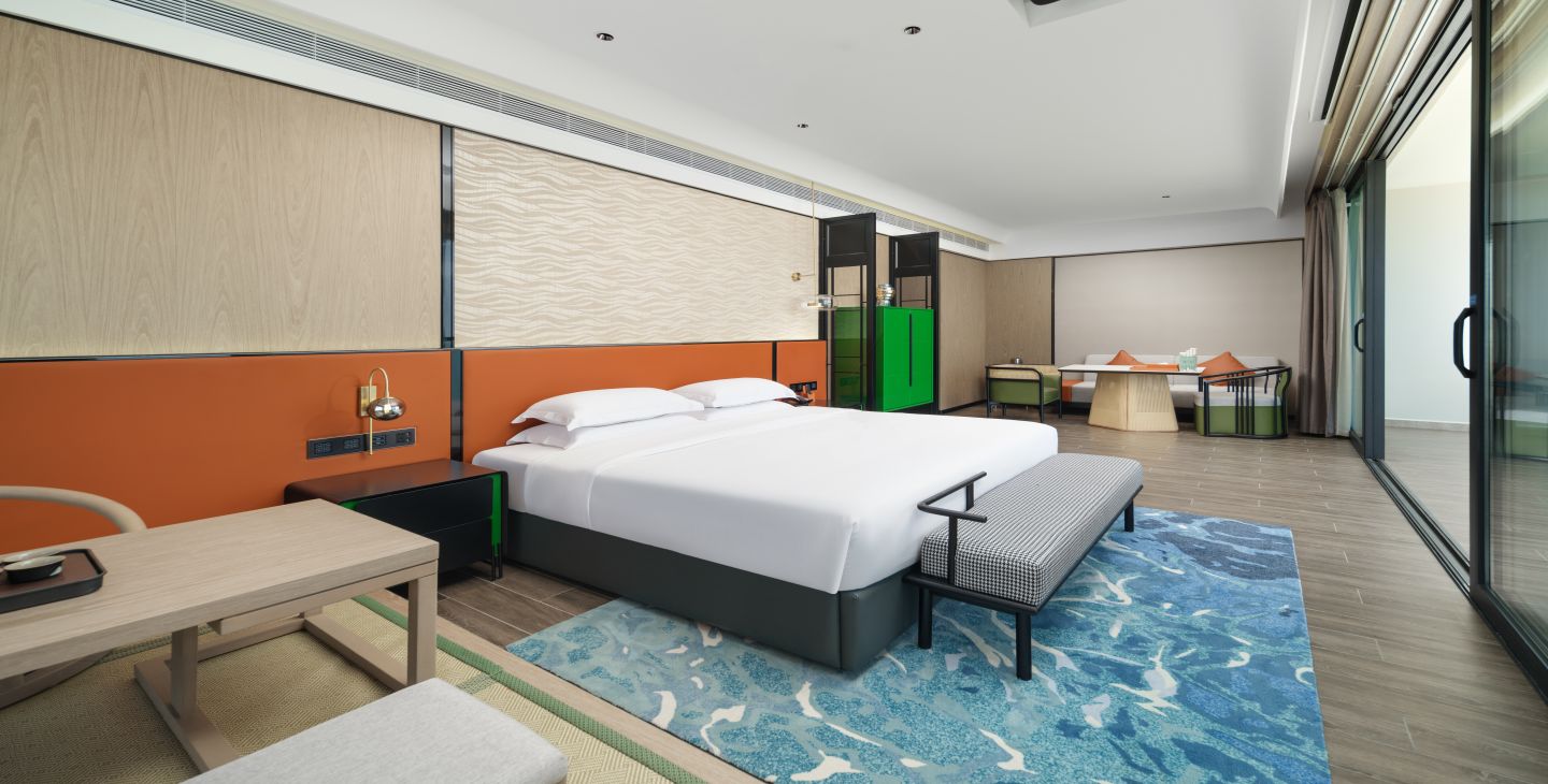 | 客房面积 | 80平米 | 客房特色 | 海景景观 / 180度观海面 / 200寸巨幕投影 / 1.2米宽榻榻米(可提供免费铺床服务) / 步入式衣橱 | 床和床品 | 一张2米宽大床 / 厚被+薄被 / 泰国乳胶床垫 |
