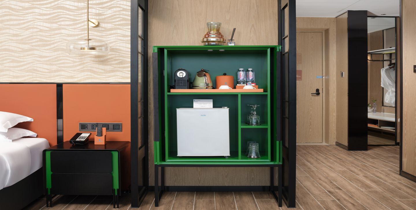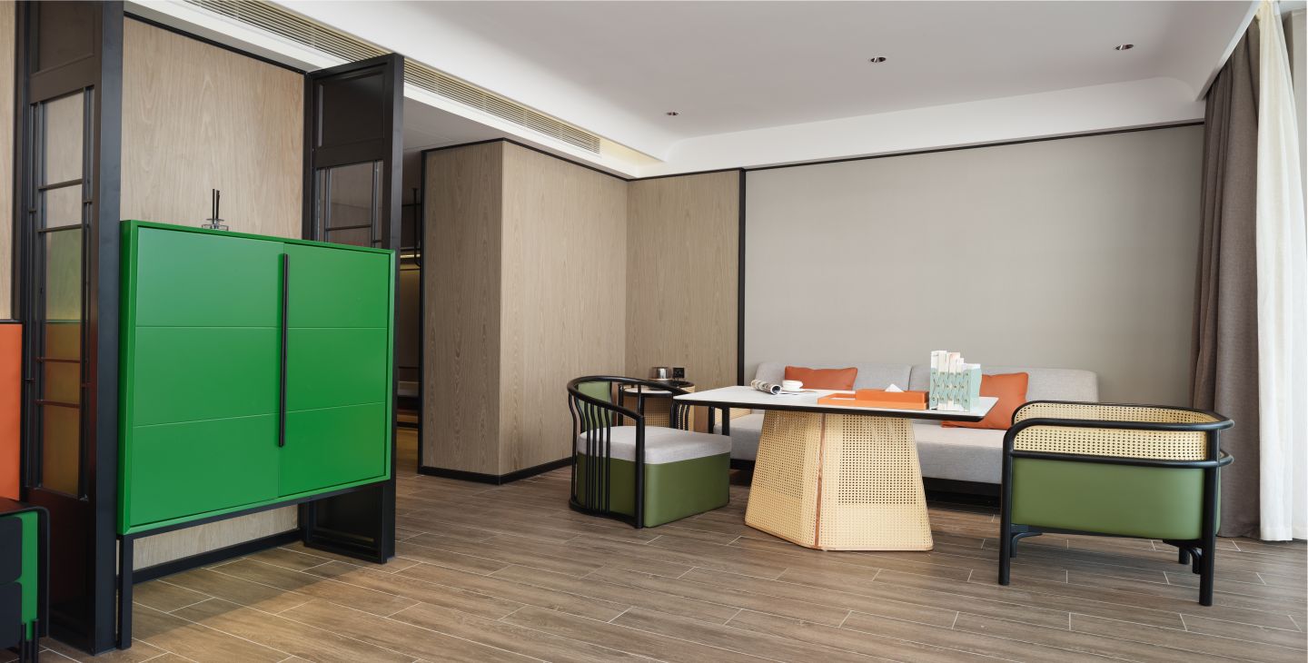 | 卫浴设施 | 双梳洗手台 / 独立浴间 / 双人浴缸 / 智能马桶 / 吹风机 / 浴袍 | 家具设施 | 榻榻米席坐 / 双人沙发 / 双椅 / 阳台圆床 / 观景高脚桌椅 / 手持式电熨斗 / 客房保险箱 / 晾衣架 | 餐饮设施 | MINI酒水吧 / 胶囊咖啡机 / 餐具 / 咖啡茶饮 / 功夫茶具 |