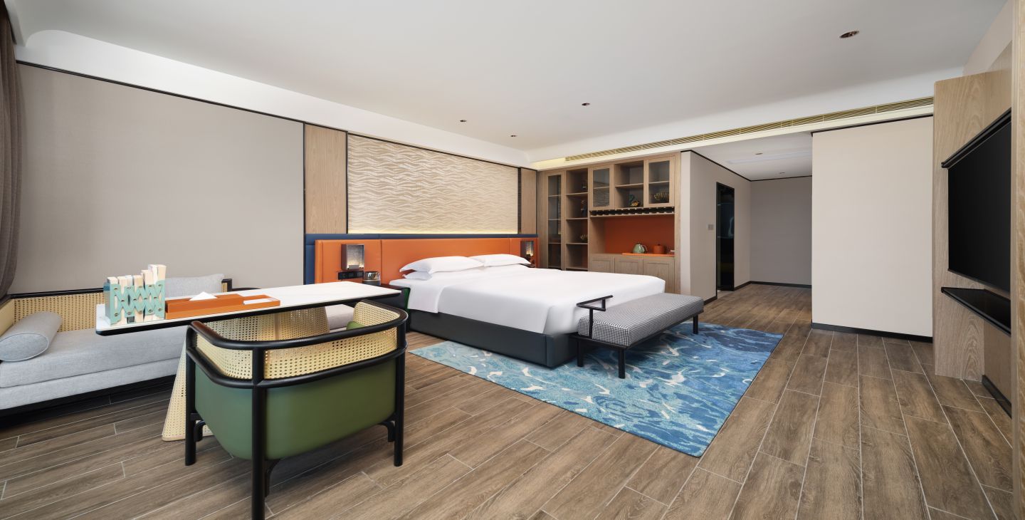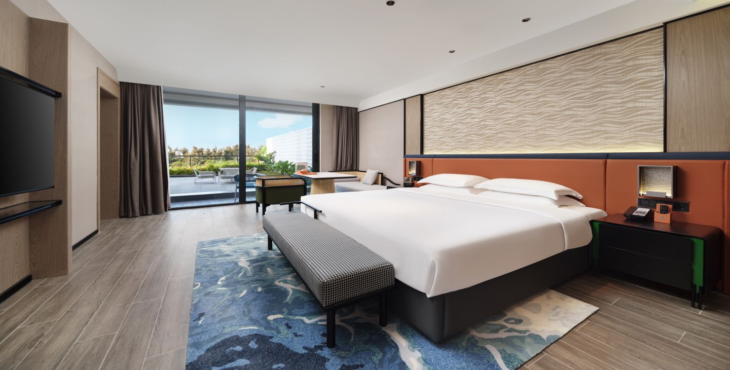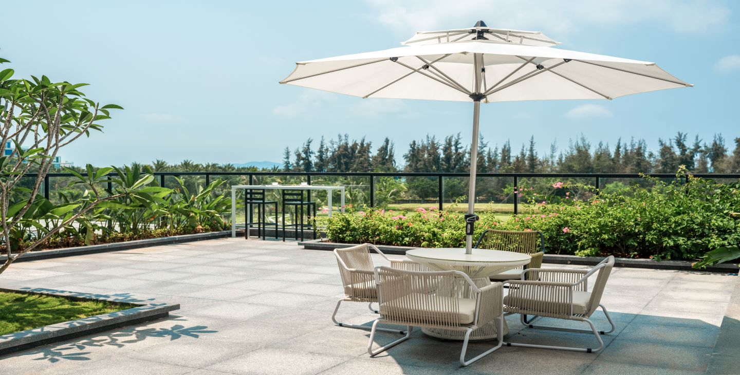 | 卫浴设施 | 独立浴间 / 智能马桶 / 吹风机 / 浴袍 | 家具设施 | 贵妃躺沙发两张 / 双椅 / 酒水装饰柜 / 露台太阳伞座椅 / 露台观景高脚桌椅 / 手持式电熨斗 / 客房保险箱 / 晾衣架 | 餐饮设施 | MINI酒水吧 / 胶囊咖啡机/餐具 / 咖啡茶饮 |