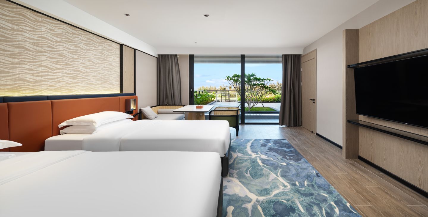 | 客房面积 | 总面积约180平米 / 客房面积:100平米 / 露台面积80平米 | 客房特色 | 园林景观 / 两居室套房 / 花园露台面积80平米 / 双卫 / 可独立分区 | 床和床品 | 一张2米宽大床 / 两张1.2米床 / 厚被+薄被 / 泰国乳胶床垫 |