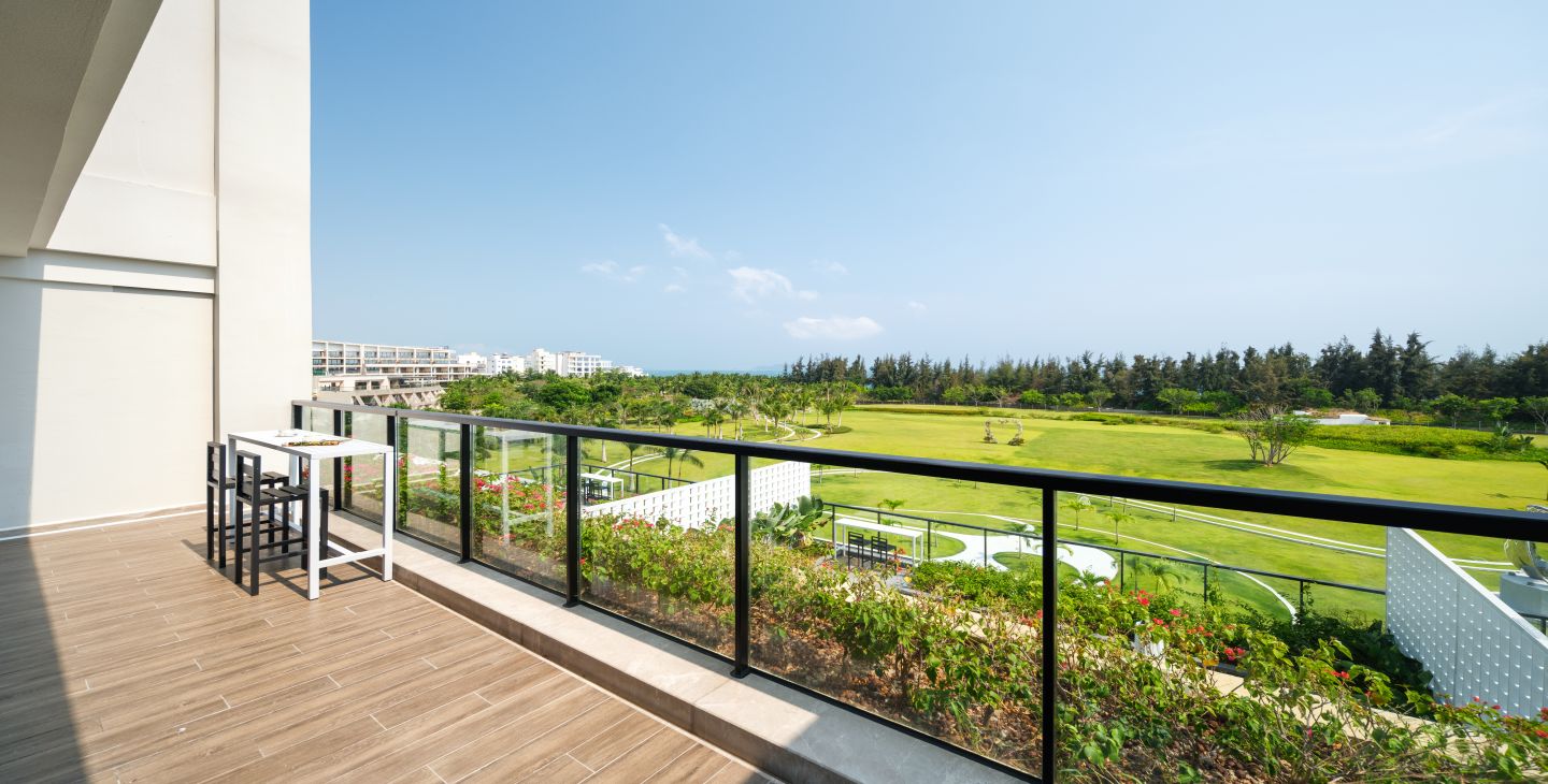 | 客房面积 | 100平米 | 客房特色 | 园景景观 / 180度观景面 / 可局部观海 / 半开敞式带客厅套房 / 地座式茶座 | 床和床品 | 一张2米宽大床 / 厚被+薄被 / 泰国乳胶床垫 |