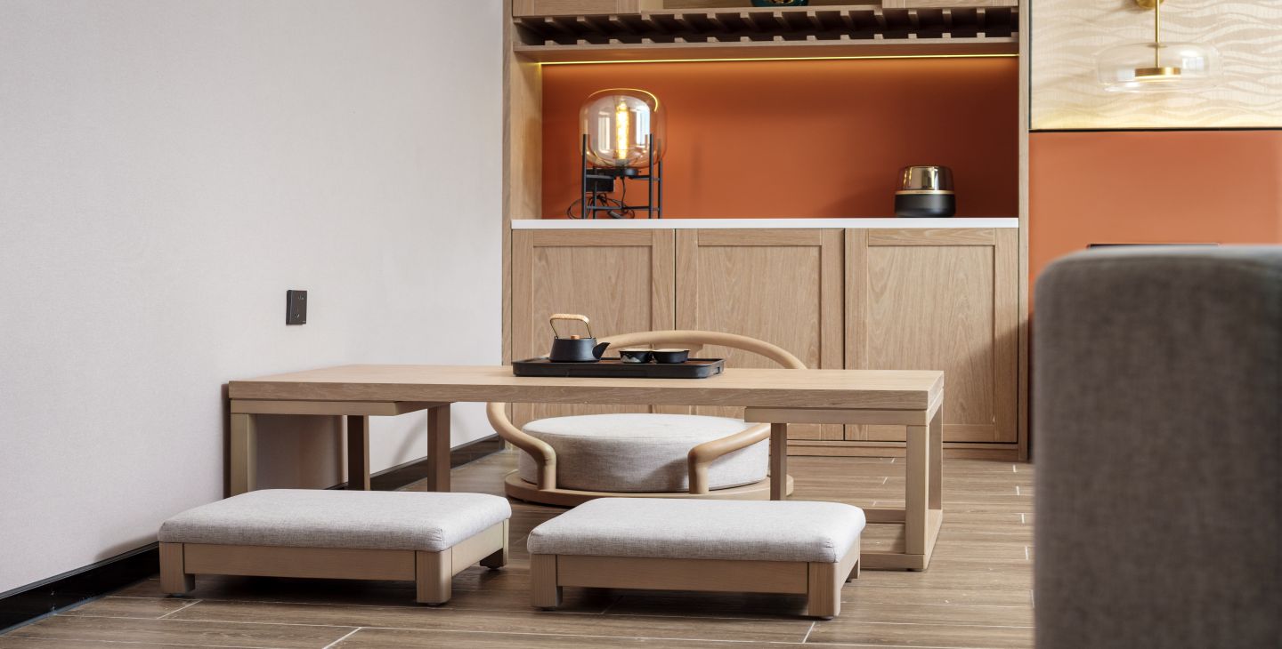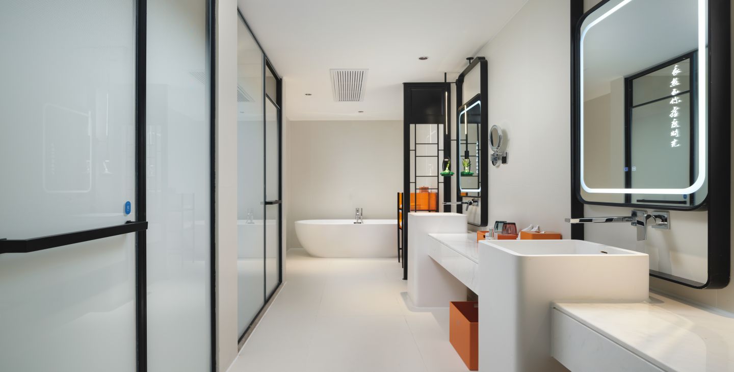| 卫浴设施 | 双梳洗手台 / 独立浴间 / 双人浴缸 / 智能马桶 / 吹风机 / 浴袍 | 家具设施 | 地座式茶座 / 三人沙发 / 三椅 / 阳台圆床 / 观景高脚桌椅 / 酒水装饰柜 / 手持式电熨斗 / 客房保险箱 / 晾衣架 | 餐饮设施 | MINI酒水吧 / 胶囊咖啡机 / 餐具 / 咖啡茶饮 / 功夫茶具 |