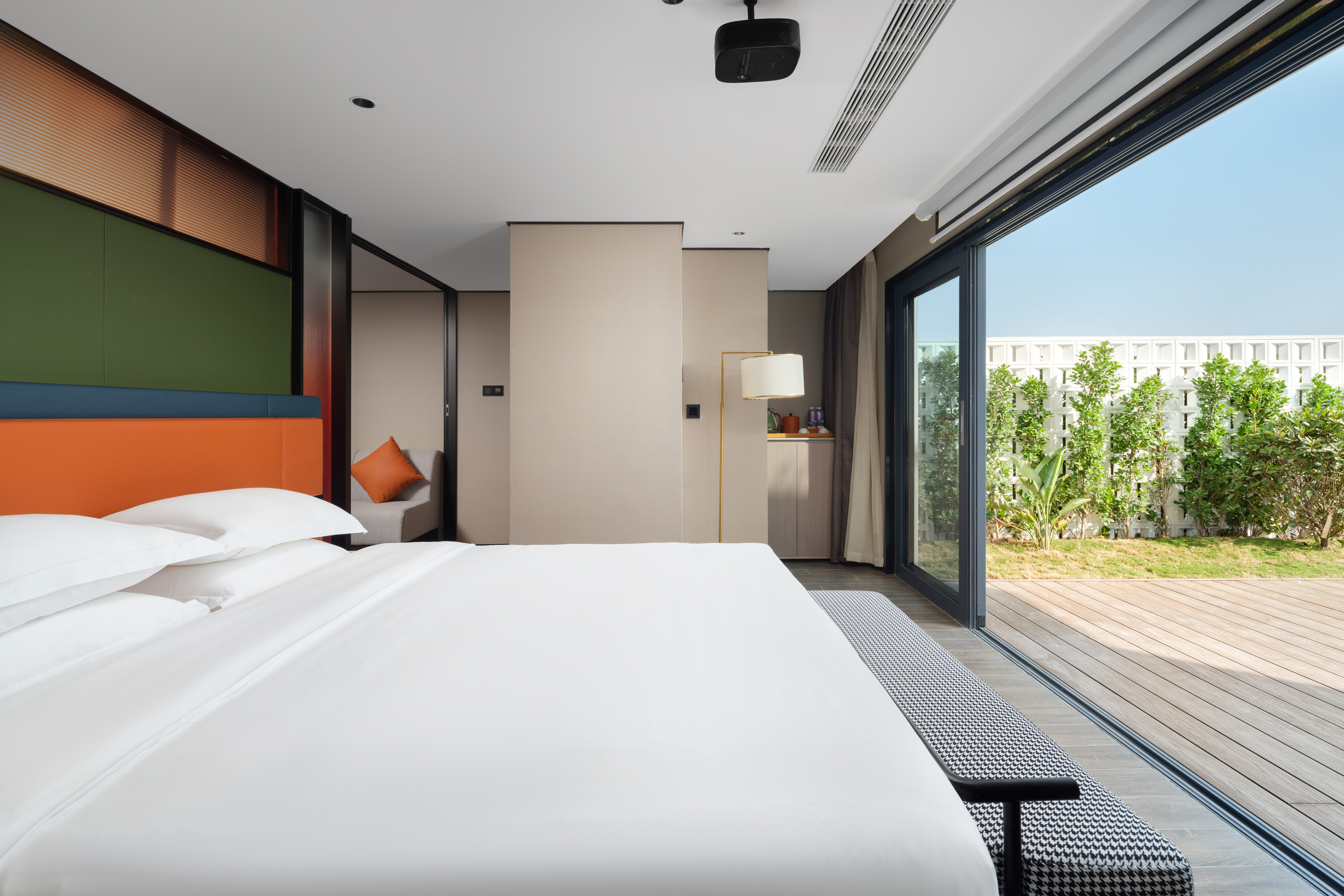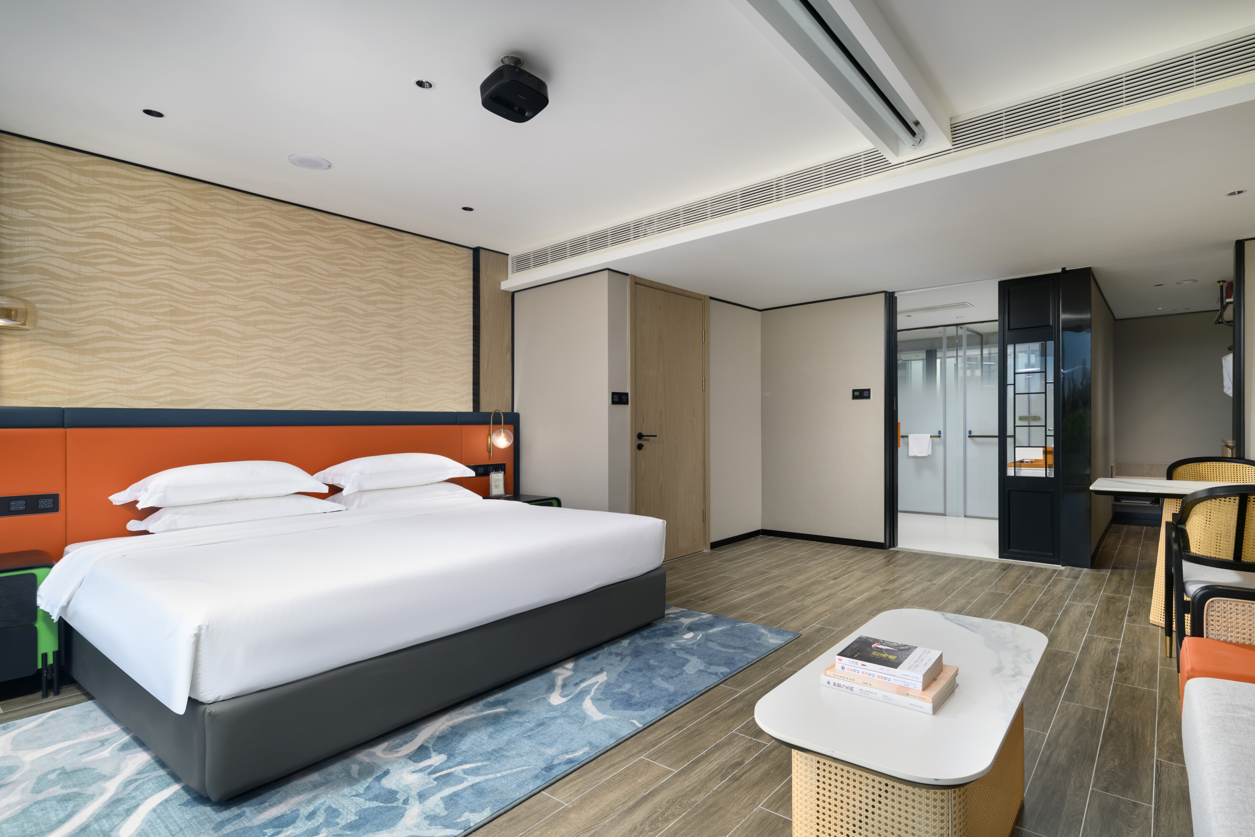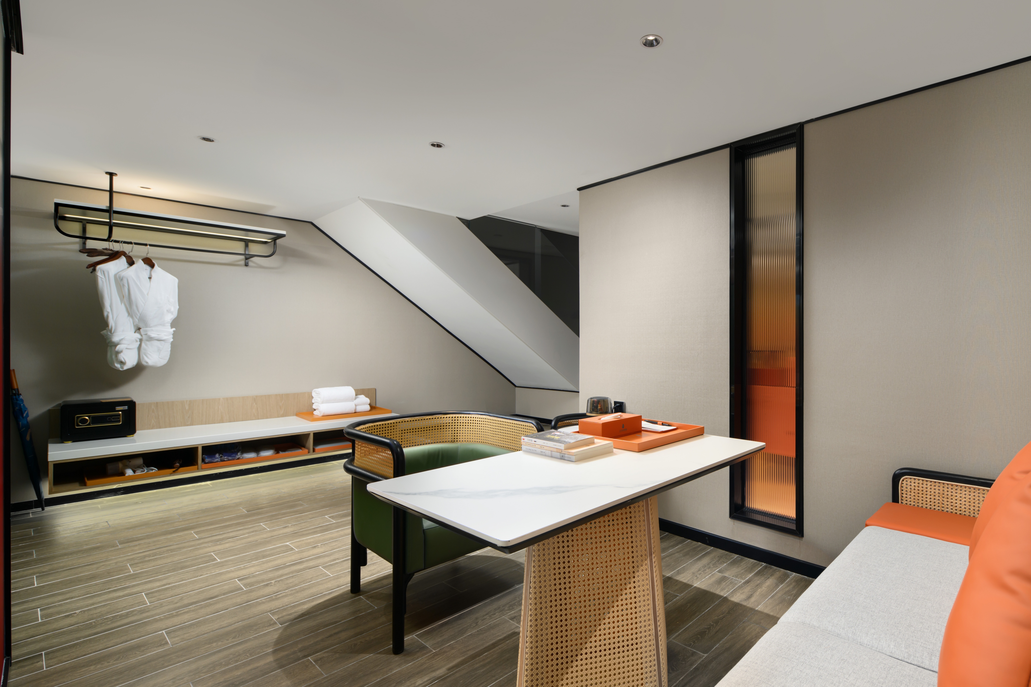 | 卫浴设施 | 独立卫浴/智能马桶/吹风机/浴袍/浴缸 | 家具设施 | 手持式电熨斗/客房保险柜/晾衣架/部分房间配置榻榻米 | 餐饮设施 | MINI酒水吧/胶囊咖啡机/餐具/咖啡茶饮 |